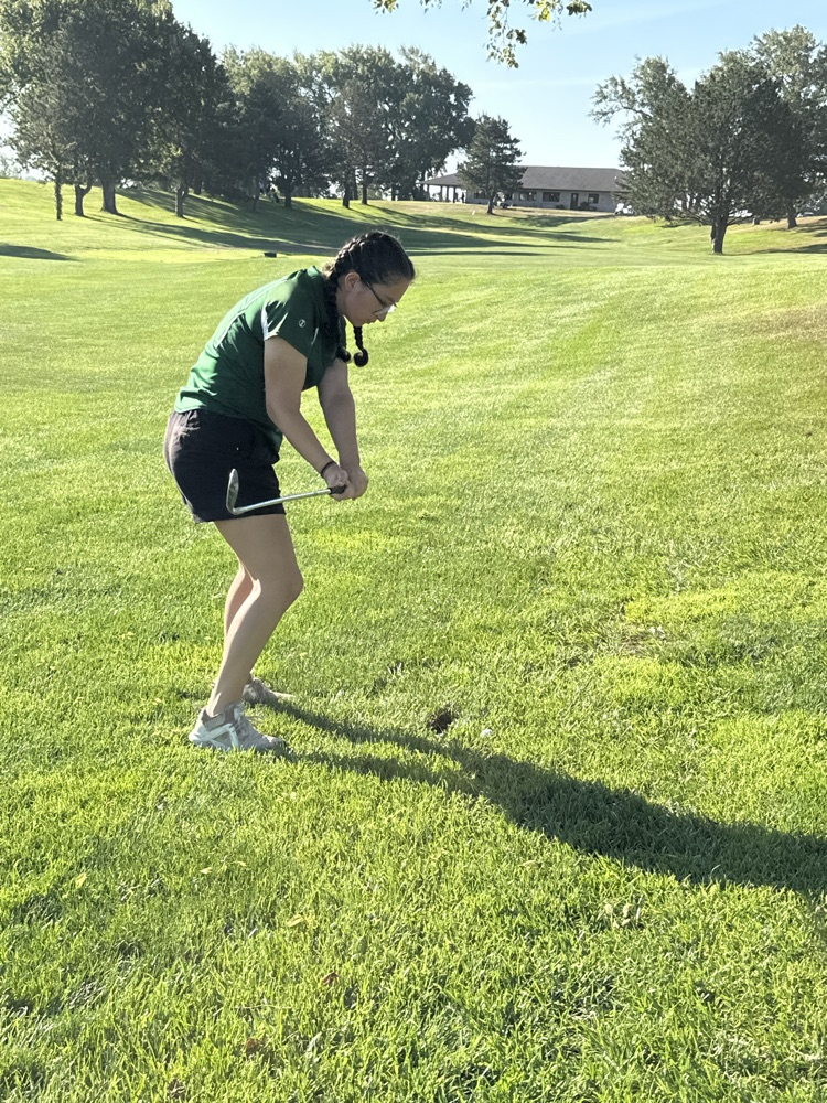 Ashlynn approaches the green on Hole 4 in Humphrey.