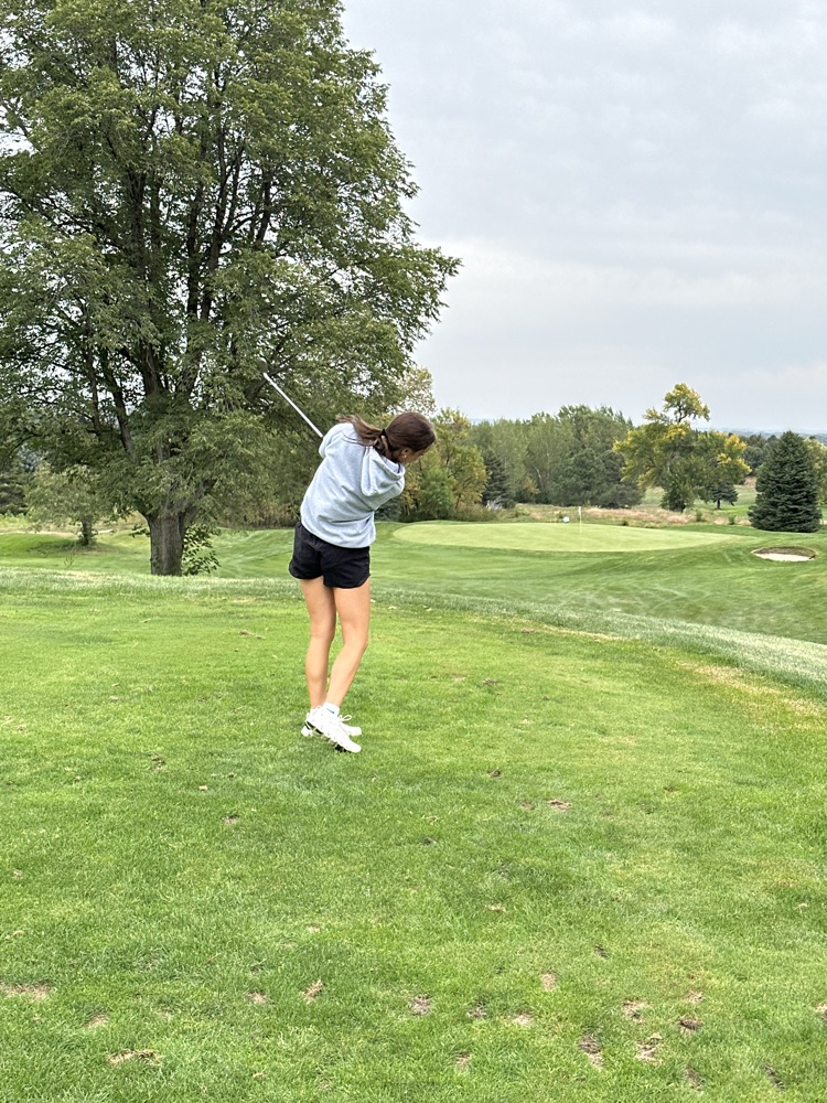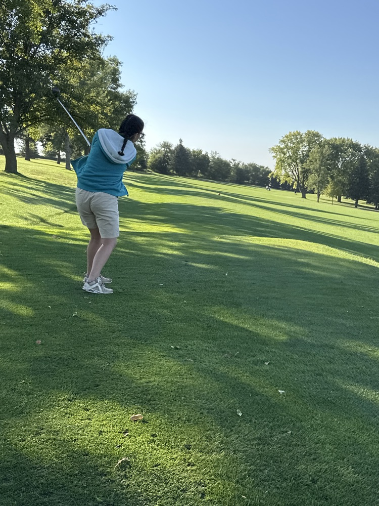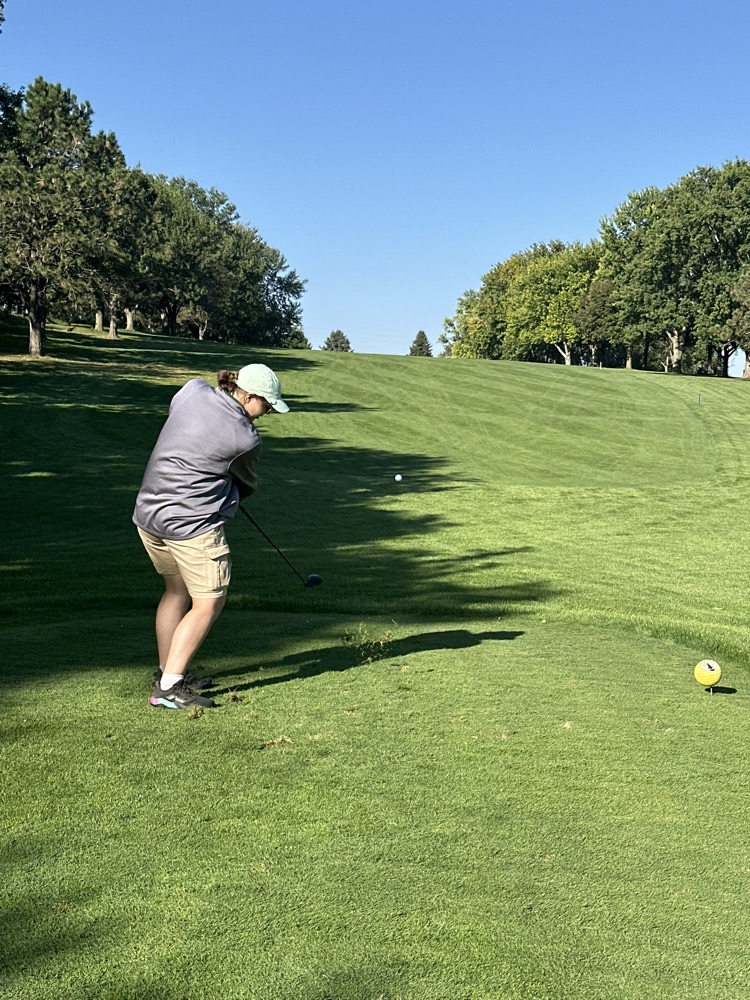 Ashlynn tees off on Hole 3 in Battle Creek.