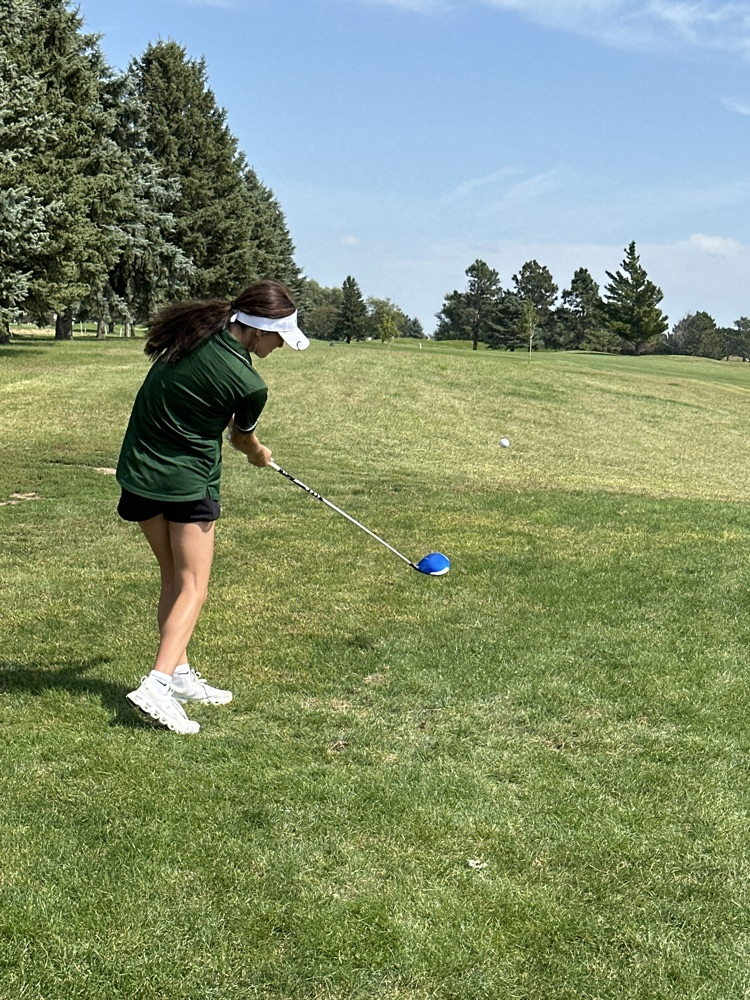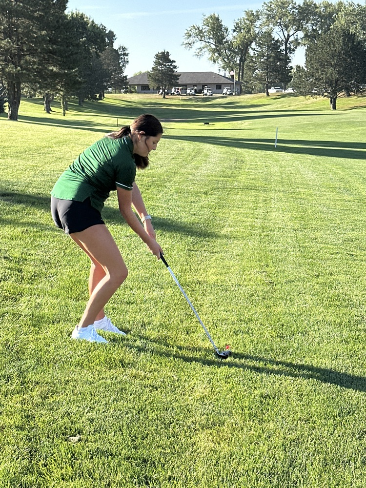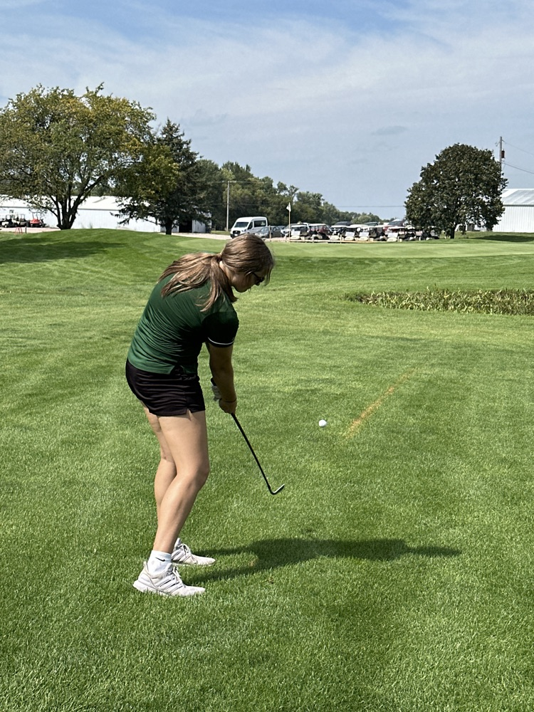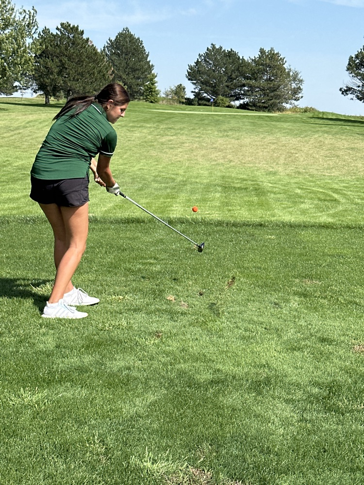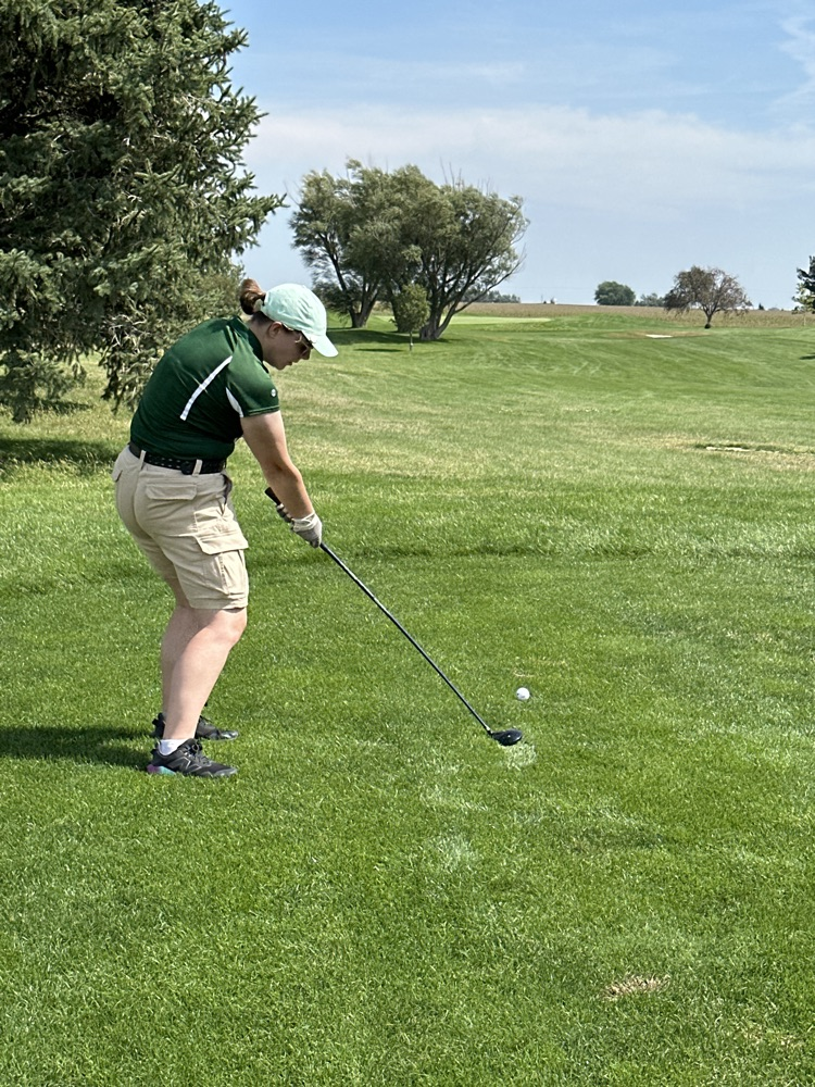 Olivia tees off on Hole 8 in Humphrey.